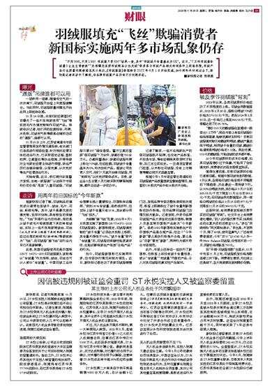 为破解“掺飞丝”乱象,2022年4月1日我国实施了新国标GB/T14272-2021《羽绒服装》。新国标规定,羽绒服填充物的“绒子含量”必须在水洗标上标明,其含量不得低于50%。“绒子含量”取代“含绒量”后,羽绒服的保暖性能更易评估,也能切断商家生产低质“合格产品”的行为。
