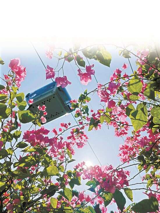 ■11月27日,白云索道的缆车从云萝植物园簕杜鹃专类园上驶过。位于广州白云山南麓的云萝植物园定于29日上午10时正式开园。 新快报记者 郭晴/摄