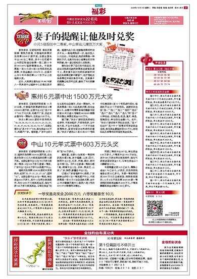 新快报讯 记者陆妍思报道 11月30日晚,中国福利彩票游戏快乐8第2024321期开奖,全国中出3注“选十中十”500万元大奖,均落户广东,后证实由惠州市一票独中,总奖金1500万元。
