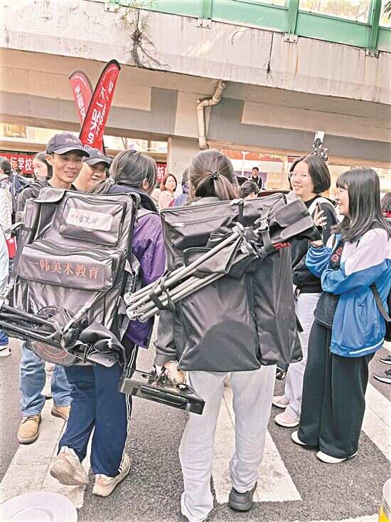 ■美术艺考生携带的考试物品较多,有画板、画架、颜料等用具。