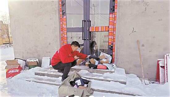 正值伊犁州大雪天气,快递员往站点送货风雪无阻。