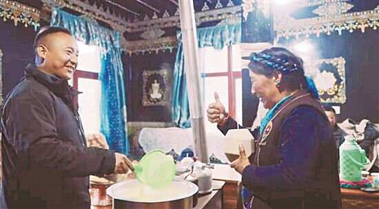 ▲西藏山南市浪卡子县的小伙给母亲网购了海南椰子,母亲第一次尝到椰子的味道。