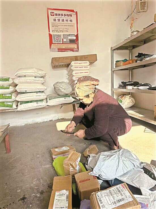 最初,各村的代收点还发短信提醒村民到哪里取快递,少数民族会用双语。慢慢地,网购在很长一段时间占据村子的“话题热榜”,“村中CBD”小卖部成为信息集散地,每天大家在此交流购物心得,还互相分享“种草”好物。有村民兴奋地告诉大家自己买了蓝牙耳机,放牧时听音乐。就连最常用的农具他们也要在拼多多购买。