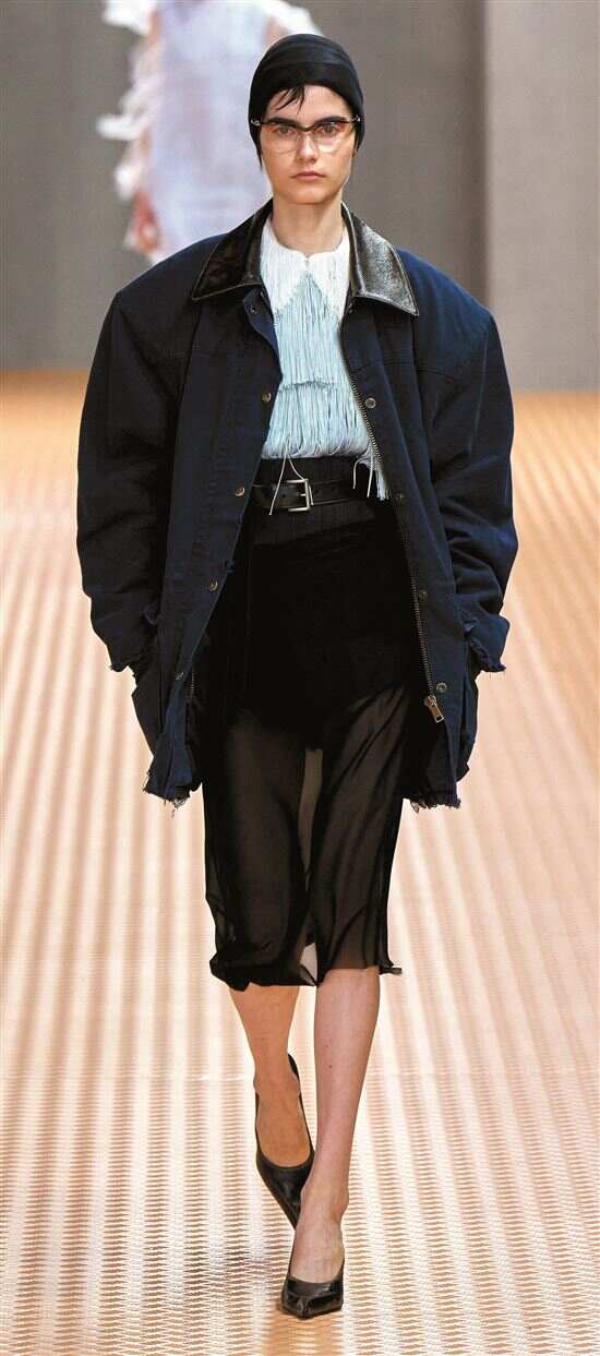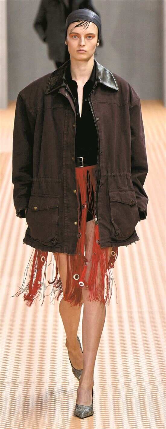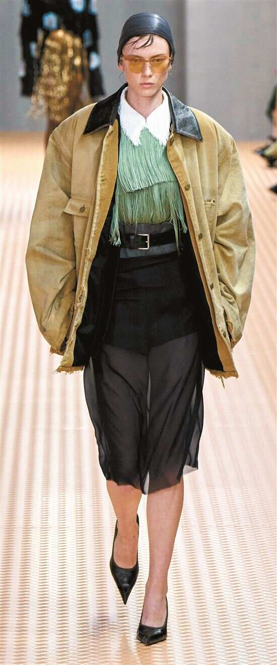 今年谷仓夹克又站在了潮流前线,最早掀起这阵巴恩风的是Prada秀场,经典版型融入更多抽绳、口袋等户外时髦元素,与薄纱裙进行叠搭的搭配融合了过分粗犷的质感,刚与柔平衡得刚刚好。