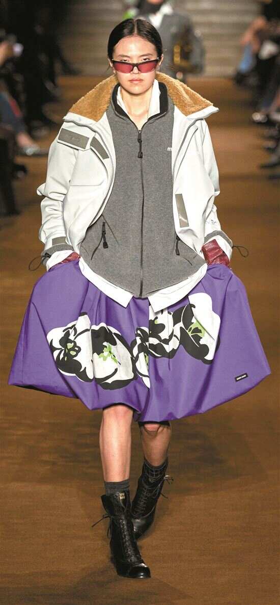半裙可减轻廓形功能性外套的量感,增加轻盈感的同时形成混搭反差。