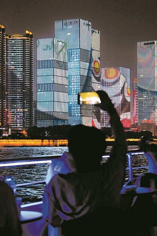每当夜幕降临,湘江两岸灯光亮起,将长沙夜空装扮得流光溢彩,犹如流动的画卷,串起了城市的繁华。