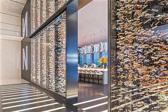 日落时分从房间俯瞰,芙蓉路与解放路车水马龙,一幢幢楼宇地标的风光也尽收眼底。夜幕低垂,走进天际酒吧Bar 93,边喝着独具“湘”味的特调鸡尾酒,边欣赏灯光璀璨的山水洲城景致。