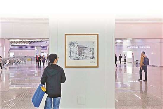 ■为庆祝澳门回归祖国25周年,12月5日,“莲颂”美术写生作品展在广州地铁番禺广场站开幕。新快报记者 毕志毅/摄