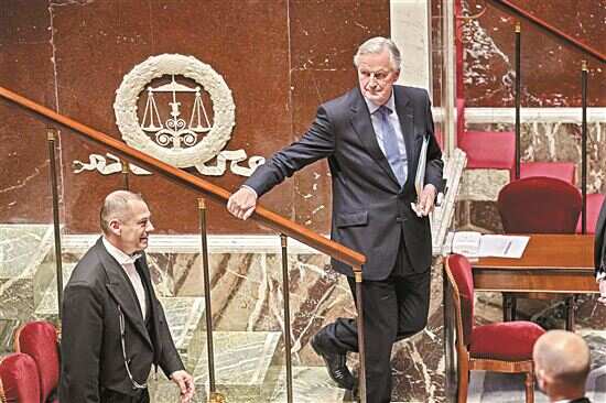 ■12月4日,在法国巴黎,法国总理巴尼耶(后)在国民议会就对政府不信任动议投票表决前辩论上发言后离开。新华社发