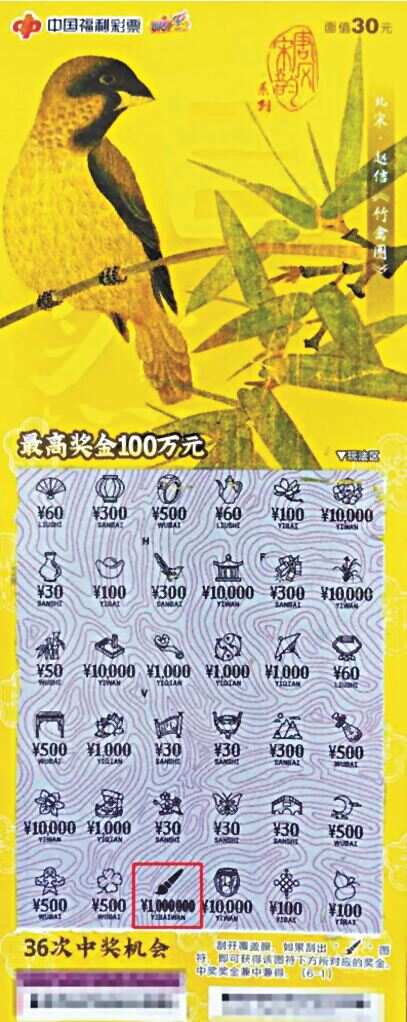 福彩刮刮乐“唐风宋韵”(上图)以唐宋名家的绘画作品作为设计元素,票面精美,颇具古韵。日前,夏先生(化姓)在佛山市南海区44130367福彩销售站点购彩,幸运刮出“唐风宋韵”头奖100万元。