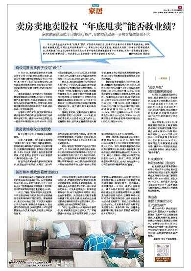 财经评论员郭施亮向新快报记者表示,家居企业年底开启“大甩卖”,或与年底冲击业绩、提升竞争力有关。通过出售股权或卖房卖地,可以提升年底业绩,也可以起到“保壳”(保住上市公司资质)、保业绩的效果。