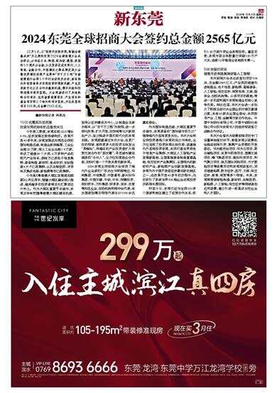 12月5日,以“投资开放新东莞,智链全球赢未来”为主题的东莞2024全球招商大会成功举办,分布在日本、韩国、新加坡、德国、美国的5个境外分会场,以及贸易促进东莞行、人工智能、金融合作、中国潮玩之都品牌发展大会暨世界潮玩动漫产业周和“百千万工程”专场招商推介会等5个平行活动同步启动,面向海内外投资者展示东莞投资环境新风貌、产业发展新变化以及合作共赢新机遇,携手共绘科创制造强市美好蓝图。大会现场进行了央地战略合作项目、应用场景招商项目、产业项目和基金项目等三个批次的项目签约,共达成签约项目506宗,总金额2565亿元。