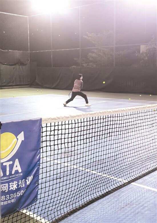 去年11月,小金初次接触夜课。“最初是我们团队的老板帮我报了网球课,还赞助了一个网球拍给我。特别感谢他,让我有机会接触一个新的运动项目。”小金告诉记者,后来她喜欢上网球运动,就自掏腰包花了2400元续课,还添置了各种网球装备,“现在我已经掌握隔网移动、正反手击球。”