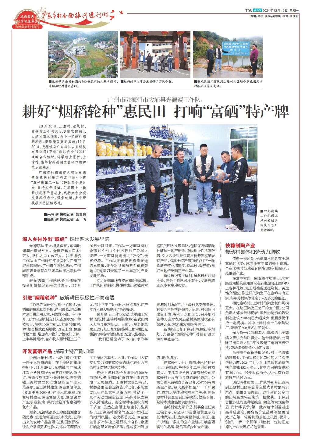 广州市驻梅州市大埔县光德镇工作队:耕好“烟稻轮种”惠民田 打响“富硒”特产牌
