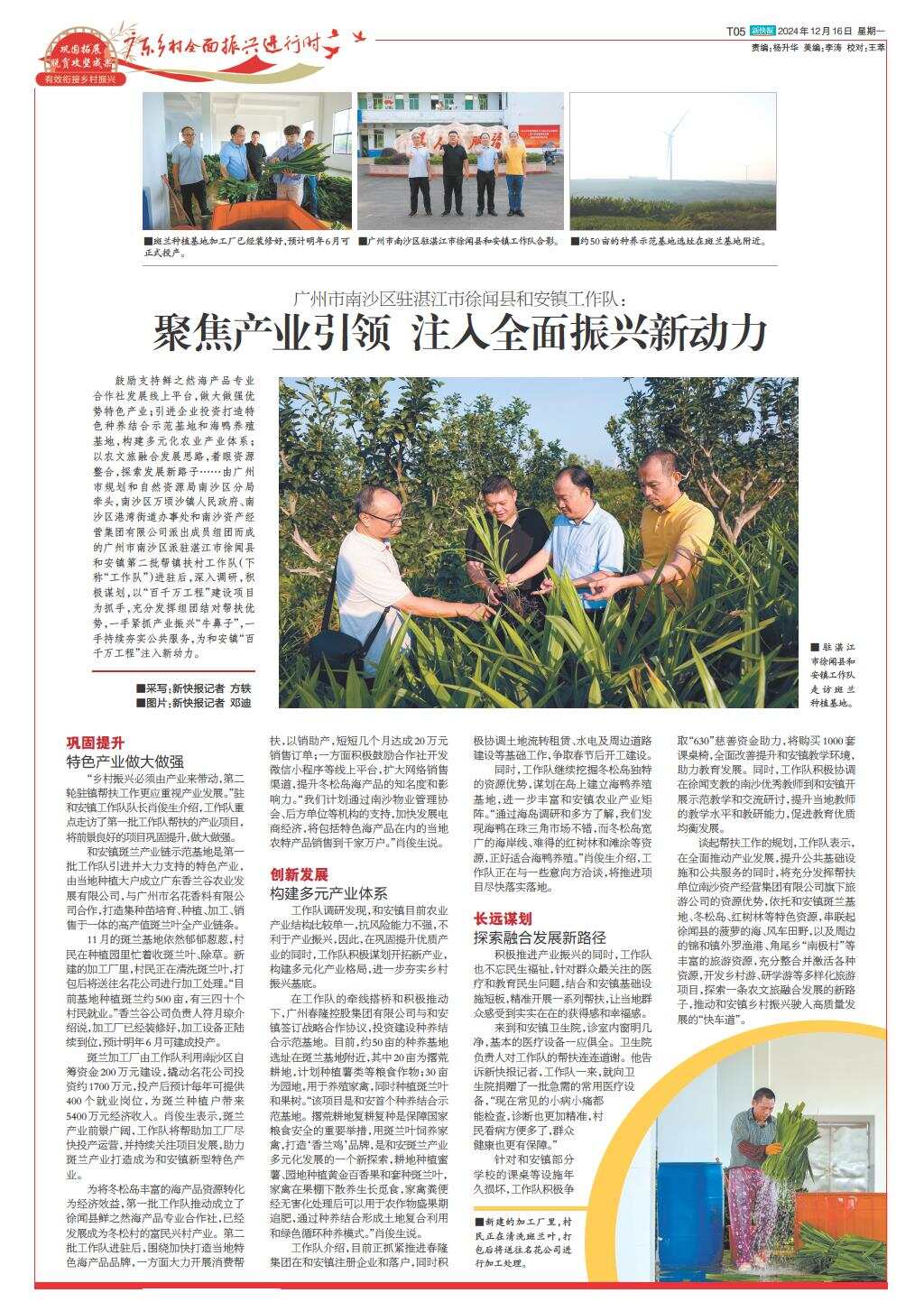 广州市南沙区驻湛江市徐闻县和安镇工作队:聚焦产业引领 注入全面振兴新动力