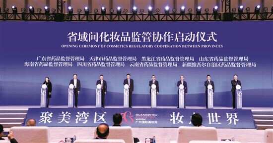“世界美妆看中国,中国美妆看广东”。广东化妆品产业起步较早,产业基础雄厚,产业生态多元,高质量发展的潜力足、空间大。全省持证化妆品生产企业约3300家,占全国56%,化妆品工业总产值突破2000亿元,均位居全国第一。目前,广东化妆品产业已经形成了集上游的原料、包材,中游的研发、制造,下游的品牌、营销于一体的完整产业链,为推动产业高质量发展提供了关键支撑。当天,广东、天津、黑龙江、山东、海南、四川、云南、新疆八省(区、市)正式启动省域间化妆品监管协作,化妆品行业迎来更加规范、更加安全的高质量发展新阶段。