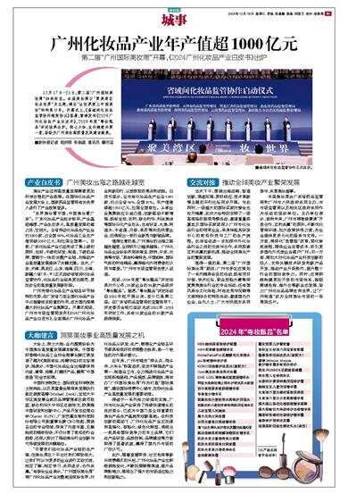 12月17日-21日,第二届“广州国际美妆周”如约而至。本届美妆周以“聚美湾区 妆点世界”为主题,喊出“让世界爱上中国美妆”的响亮口号。开幕式上,《省域间化妆品监管协作框架协议》签署,重磅发布《2024广州化妆品产业白皮书》,2024年度“粤妆甄品”评定结果出炉。院士大咖、业内翘楚共聚一堂,纷纷为广州美妆高质量发展建言献策。