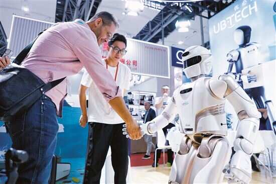 ■在第136届广交会上,外商与深圳一家科技企业研发的机器人握手。 新快报记者 毕志毅/摄