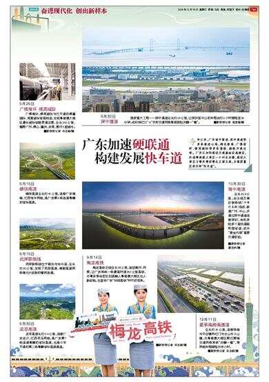 今年以来,广东南中高速、深中通道等多条高速公路,梅龙铁路、广佛南环、佛莞城际等多条高铁、城铁开通运营。广东正加快推进交通基础设施建设,打造粤港澳大湾区一小时生活圈,推进大湾区与粤东粤西粤北互联互通,为高质量发展开辟“快车道”。