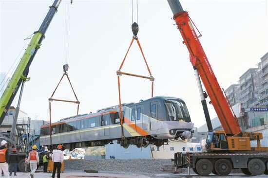 ■地铁十一号线首列列车吊装现场。通讯员 陈涛坤/摄
