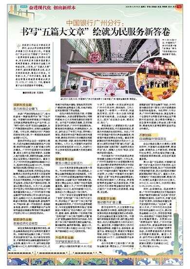 中央经济工作会议日前在北京举行,会议分析当前经济形势并部署2025年经济工作。中国银行广州分行(以下简称“广州中行”)一直秉持国有金融企业的责任与使命,将自身的发展与服务国家重大战略紧密融合,积极践行金融工作的政治性、人民性,以“五篇大文章”为抓手,锚定高质量发展主线,全力支持实体经济,彰显大行担当。今年前11月,广州中行绿色、普惠、制造业等重点领域贷款增速分别为25.67%、17.68%、21.78%,增幅均高于全行信贷整体平均增幅。