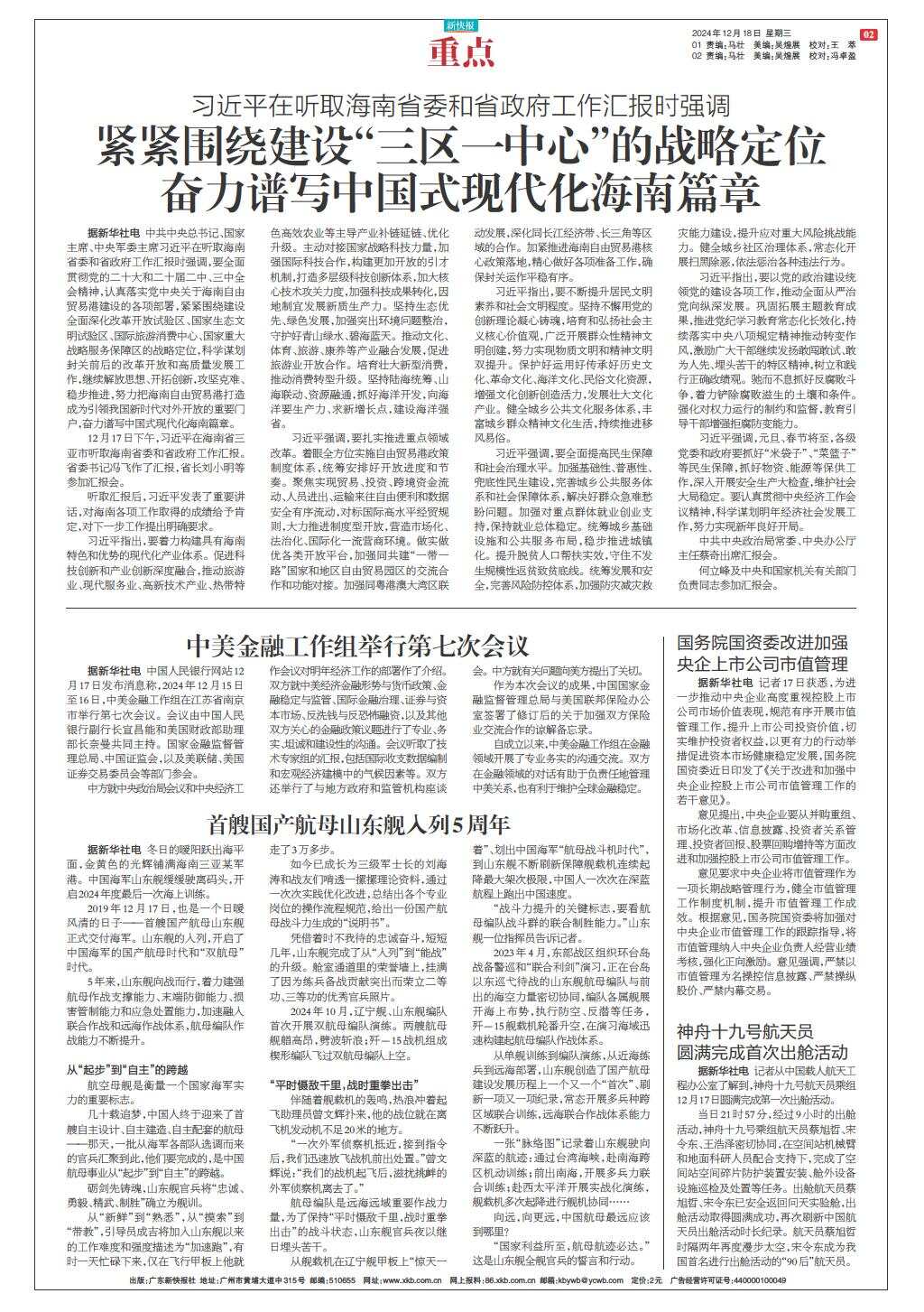 习近平在听取海南省委和省政府工作汇报时强调 紧紧围绕建设“三区一中心”的战略定位 奋力谱写中国式现代化海南篇章