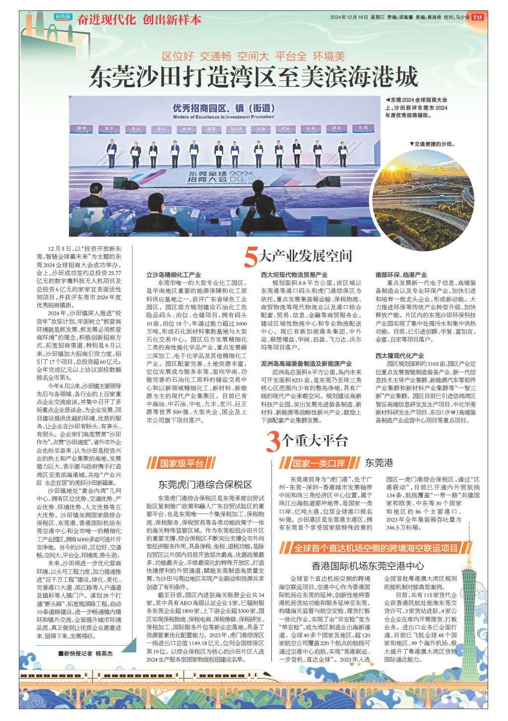 区位好 交通畅 空间大 平台全 环境美 东莞沙田打造湾区至美滨海港城