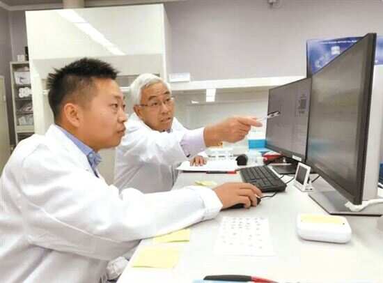 ■12月18日,南京大学地球科学与工程学院研究员唐卿(左)与中国科学院院士沈树忠(右)讨论大数据分析结果。新华社发