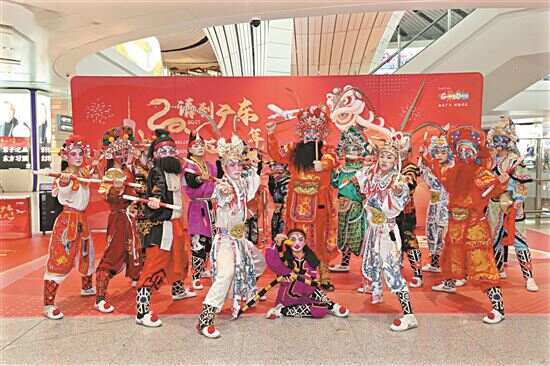 为配合全面放宽优化过境免签政策“过境免签境内停留时间由原72小时和144小时均延长为240小时”,广东省文化和旅游厅在北京大兴国际机场和成都天府国际机场精心组织了两场“请到广东过大年”非遗快闪活动。