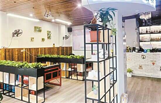 走进黄建军的体彩店,映入眼帘的是精致的内部装潢和随处可见的足球元素。店内不仅设有吧台和舒适时尚的桌椅,还有一台大电视挂在墙上最显眼的位置,循环播放着足球比赛画面和体育彩票宣传片。旁边的信息板上写满了各种比赛和球队的介绍,木制的书架上整齐摆放着各类体育杂志,使整个空间充满浓厚的体育氛围,仿佛置身于一家专为球迷打造的休闲茶吧之中。