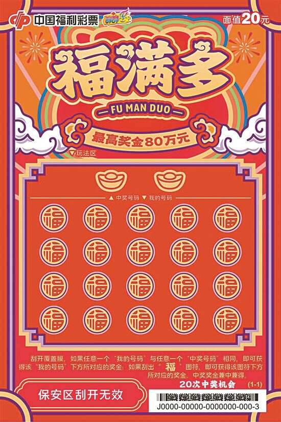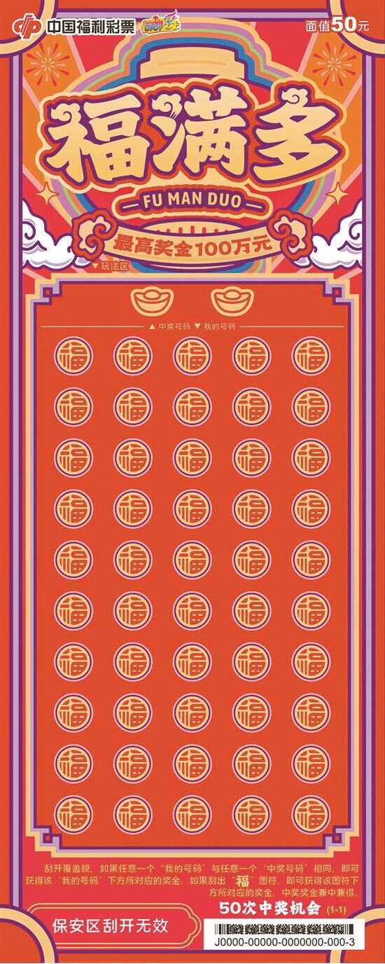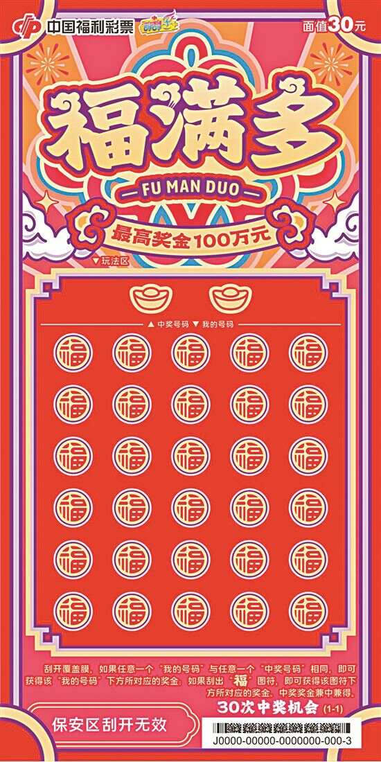 此次推出的“福满多”系列彩票,包括20元、30元和50元三种面值,每一张彩票都蕴含着满满的福气与好运。
