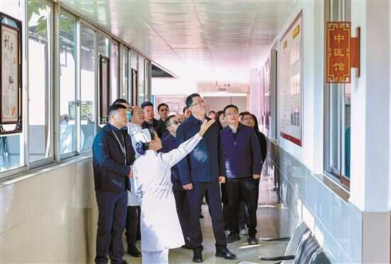 ▲调研组实地检查禾云镇卫生院中医馆民生帮扶项目。