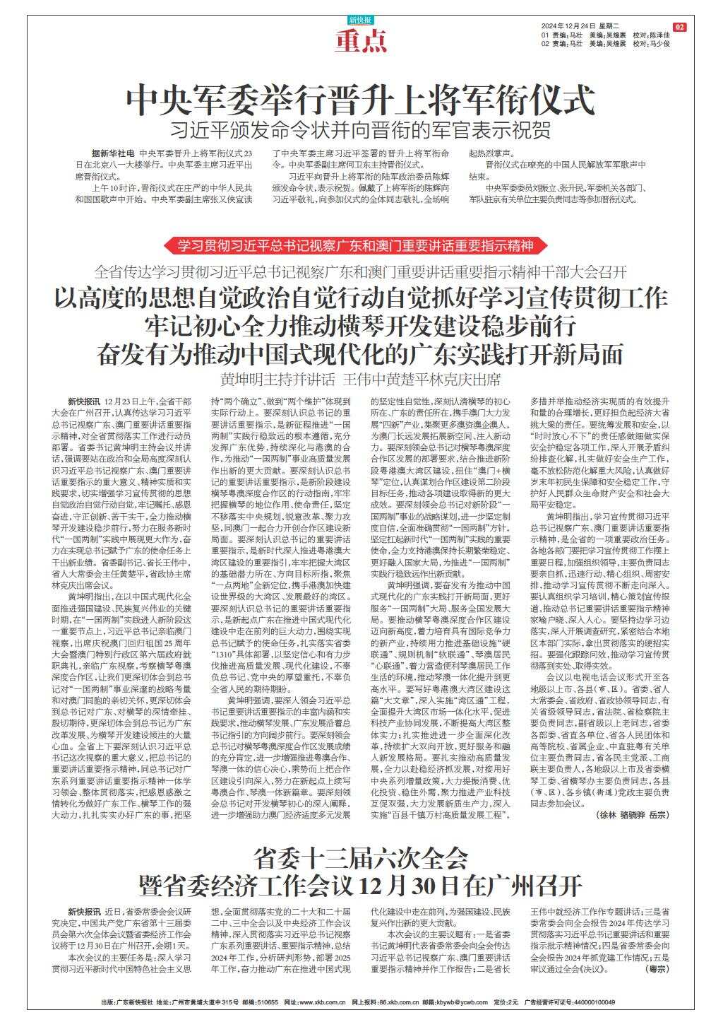 省委十三届六次全会暨省委经济工作会议12月30日在广州召开
