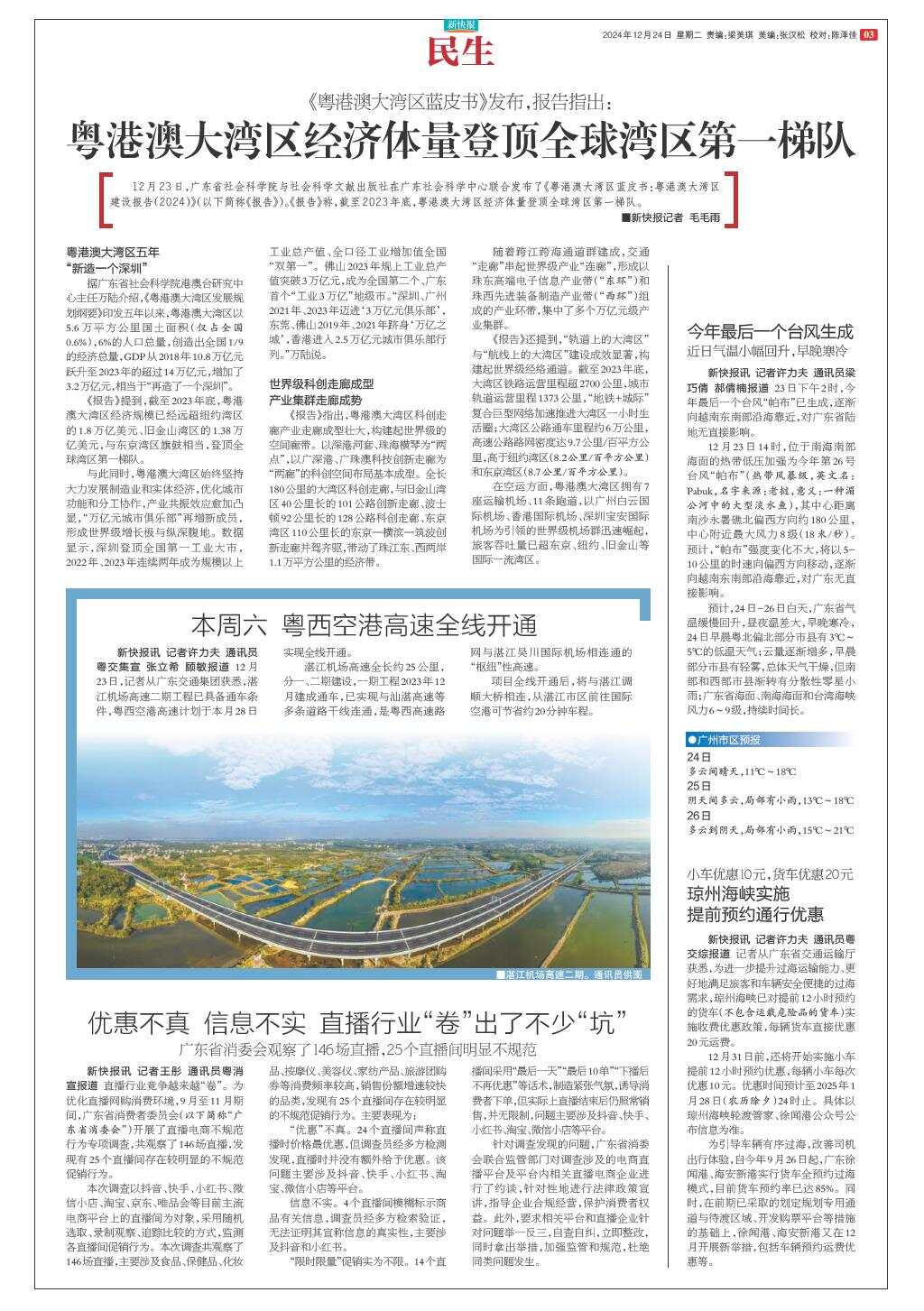 《粤港澳大湾区蓝皮书》发布,报告指出:粤港澳大湾区经济体量登顶全球湾区第一梯队
