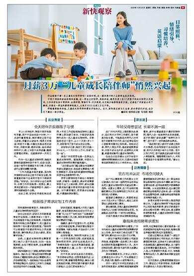 伴随着寒假的来临,儿童成长陪伴师的需求开始加大。近日,新快报记者与从业者、家长等进行对话,全方位了解这一新兴职业。