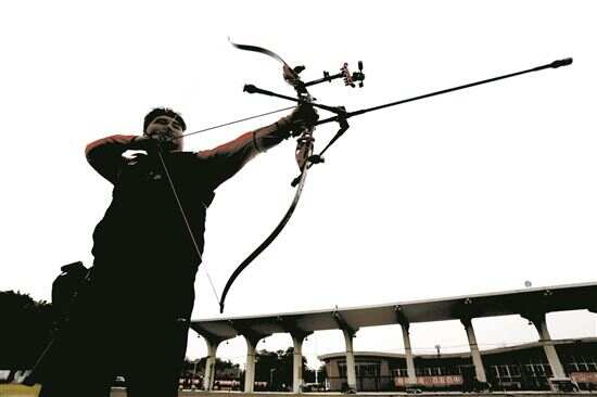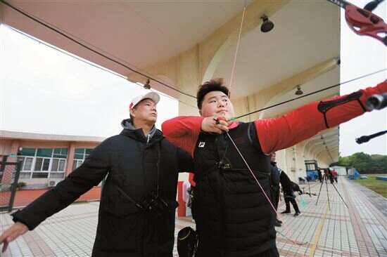 在这个冬日,记者探访了广东射箭队。虽说高架桥就在不远处,但整个射箭场非常安静,除了风吹动树叶的沙沙声,就剩选手们持弓放箭的声音。阳光照耀下,一发发羽箭飞向靶心,场面煞是好看。