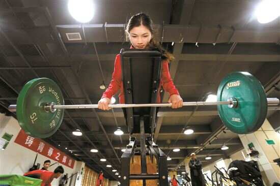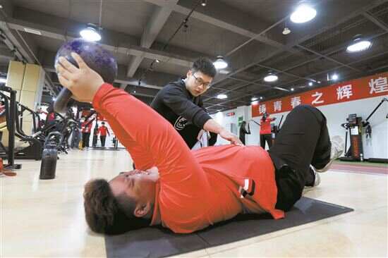 ■一名队员在健身房做肌肉训练。