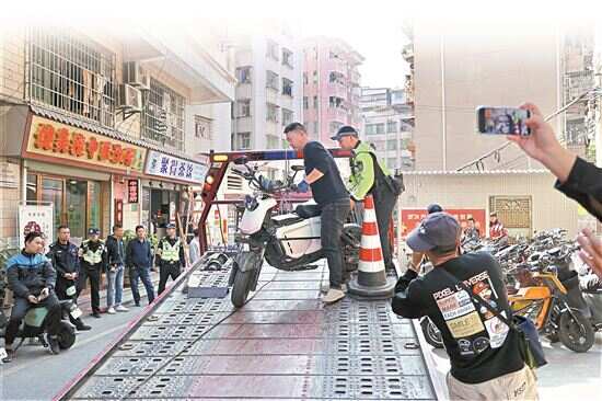 ■1月2日,广州交警配合市监部门对提供非法改装服务的门店进行整治。新快报记者 观显锋/摄