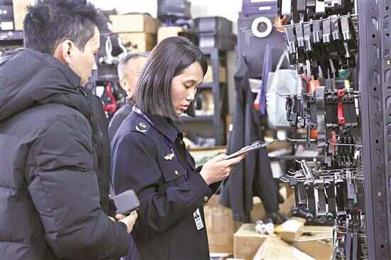 ■市场监管部门工作人员对电动自行车改装店内的配件进行检查。