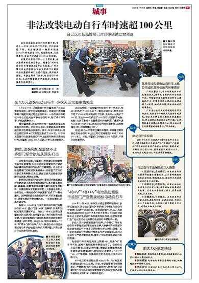 改装是电动自行车一大主要乱象,给交通带来的危害非常大。随着《广州市电动自行车管理规定》的正式实施,广州交警近来也积极配合市场监管部门对提供非法改装服务的门店进行整治,展开源头治理。市场监管部门表示,电动自行车的电池、马达和重量都有严格规定,胡乱改装要负法律责任。