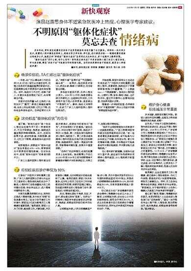 但心理专家们都提醒,当躯体化症状久查不果,就应该尽快考虑转诊到精神心理科就医,从心理疾病方面查找答案。