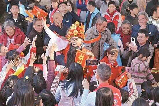 活动中,程敏等扮成“财神”,送“福”字、派利是糖,瞬间点燃了现场的气氛,欢声笑语不绝于耳,热闹得像过年一样。连州市、丰阳镇等相关单位负责人参加活动,与村民群众一起欢庆元旦。
