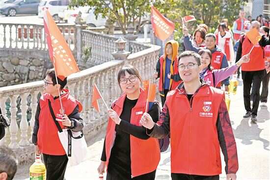 ■身着巾帼志愿者红马甲的爱心团走进丰阳古村。