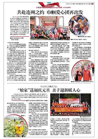 爱心团为连州市中小学校的397名孤儿每人送上一份“让爱加被”新年御寒礼包(冬被)及500份格力高学生饼干、29份蛋白肽饮品;为连州市红十字会、市妇女联合会、市教育系统关心下一代工作委员会、丰阳镇捐赠一万多册家庭教育书籍及幼儿图书;为丰阳镇56户困难学生家庭带来新年“福满礼包”(御寒物资和生活用品)。