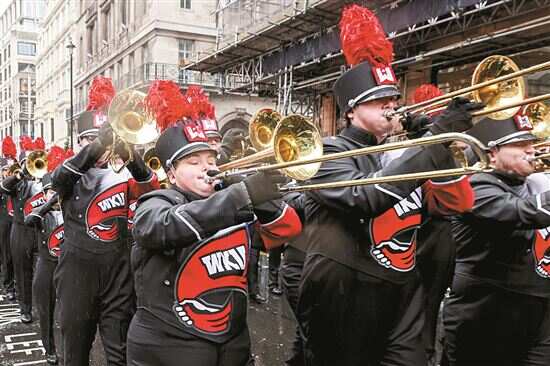 英国伦敦雨中举行新年游行