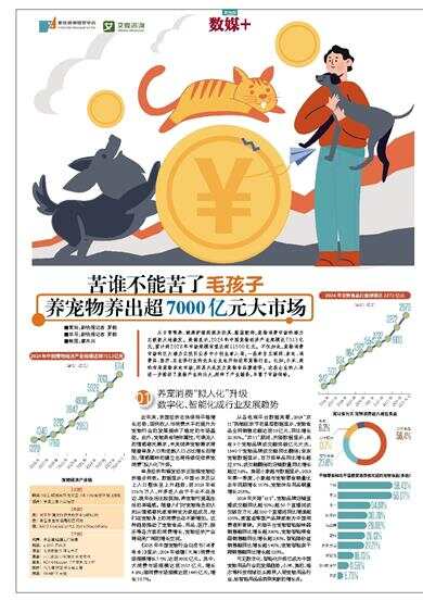 从日常喂养、健康护理到娱乐玩具、服装配饰,宠物消费市场的潜力正被极大地激发。数据显示,2024年中国宠物经济产业规模达7013亿元,预计到2028年市场规模有望达到11500亿元。不仅如此,宠物消费市场的巨大潜力正吸引众多中小创业者入局,一些来自互联网、家电、消费品、医疗、农业等行业的龙头企业也开始进军宠物行业。比如,小米、美的布局宠物家电市场,网易天成发力宠物食品赛道等。这些企业的入局进一步推动了宠物产业的壮大,延伸了产业链条,丰富了市场供给。