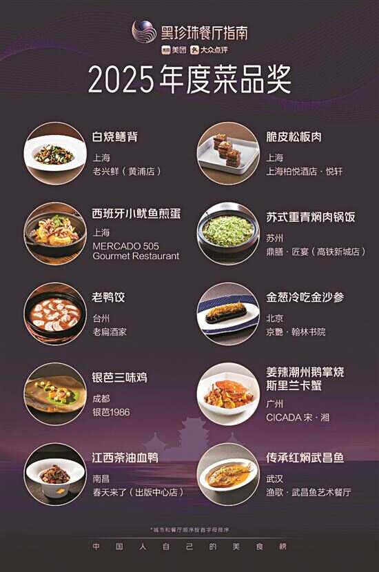 堪称网友心中的“全国十大名菜”——“2025黑珍珠餐厅指南年度菜品奖”同时出炉,这是全国首个大数据评选的精致餐饮菜品奖项,目的是倡导行业探索食材的无限可能和菜品的艺术性,而不是崇尚贵价食材。