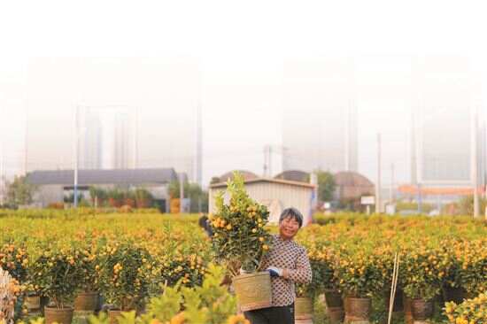 ■在广州番禺上漖村花圃,花农将年桔搬上货车,准备运到芳村花卉市场。