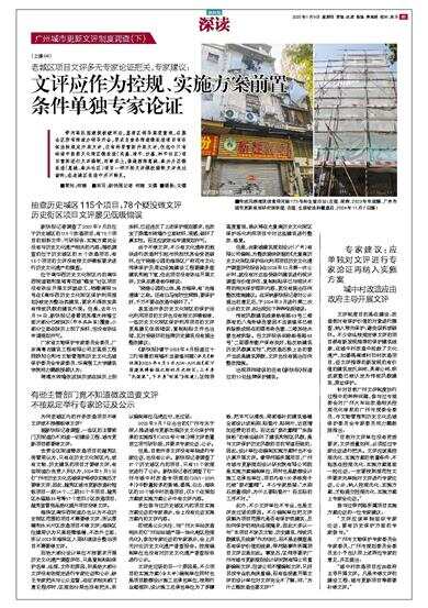 2022年9月7日出台的《广州市关于深入推进城市更新加强历史文化保护传承的实施指引(2022修订稿)》将文评前置到立项可研阶段,并要求专家论证、公示。