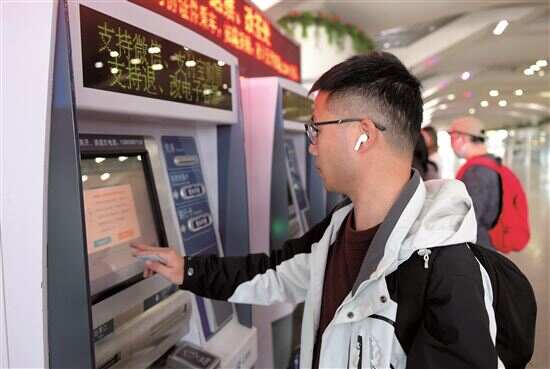 ▲乘客在广州南站取票。